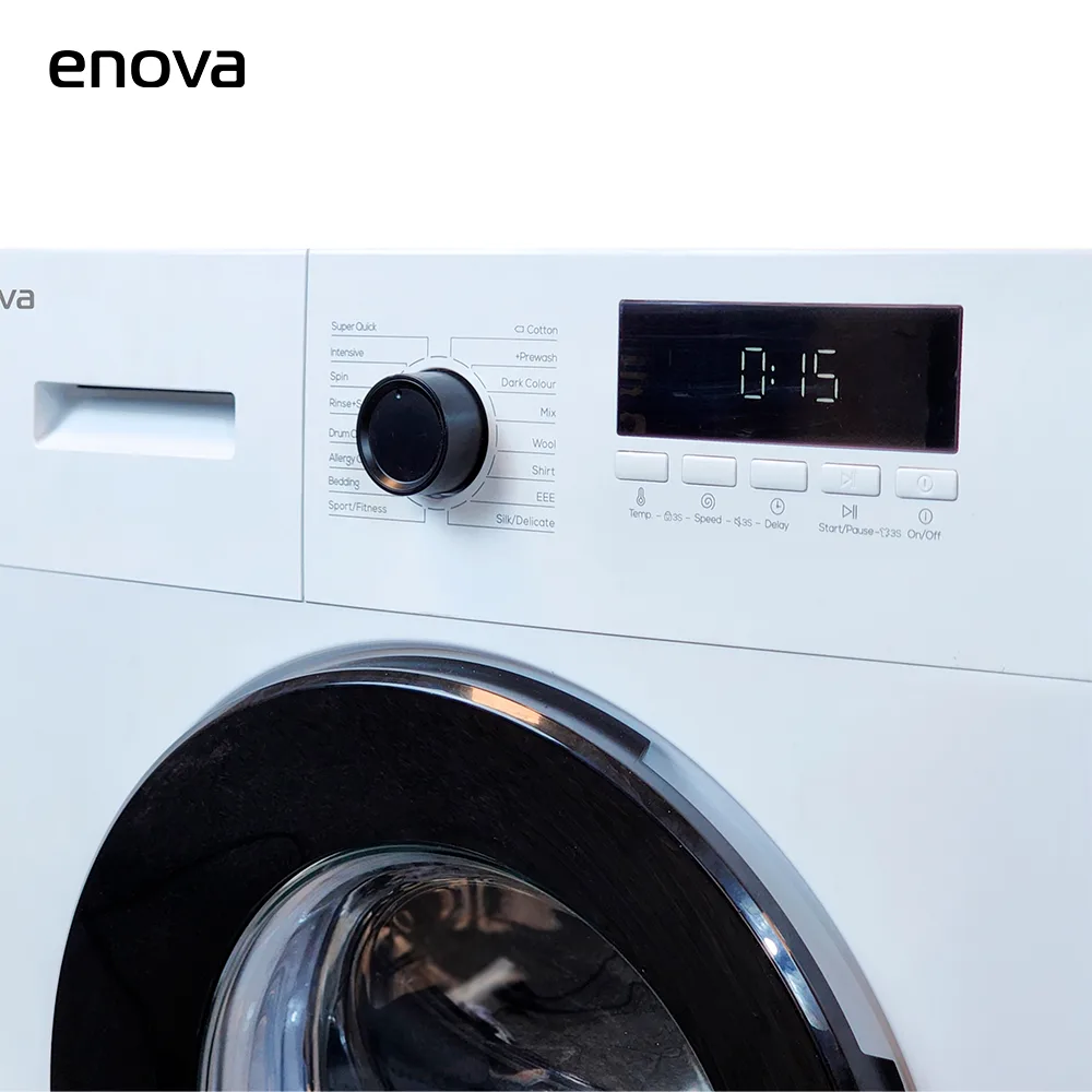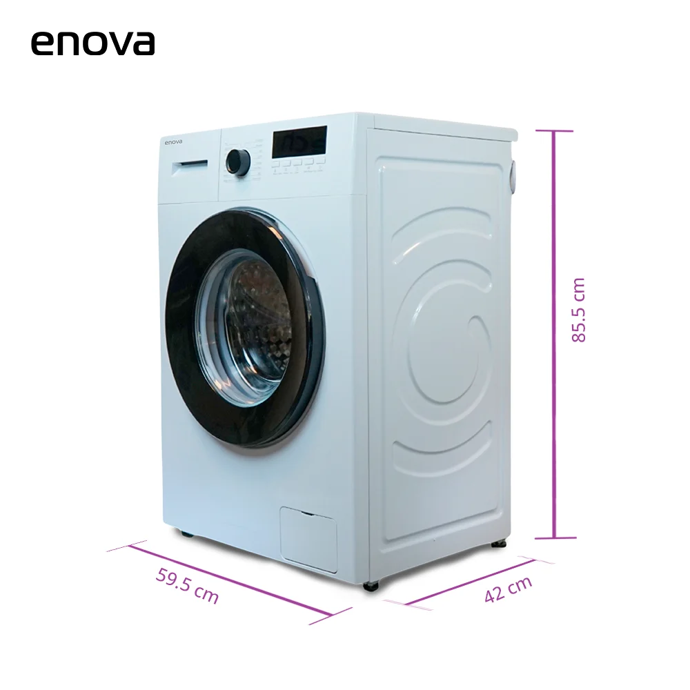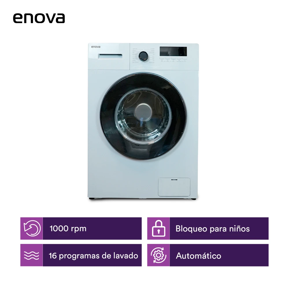 La lavadora de carga frontal Enova de 6 kg ofrece un diseño eficiente y funcional en color blanco. Con tambor de acero inoxidable, centrífugado de hasta 1000 RPM y tecnología de autobalance, garantiza un lavado efectivo. Tiene 5 temperaturas ajustables (fría, 20ºC, 30ºC, 40ºC, 60ºC, 95ºC) para adaptarse a tus necesidades y un filtro atrapa-pelusas para mayor comodidad. Incluye accesorios como manguera de entrada y documentación. Garantía de 18 meses. Ideal para quienes buscan un producto práctico y duradero.