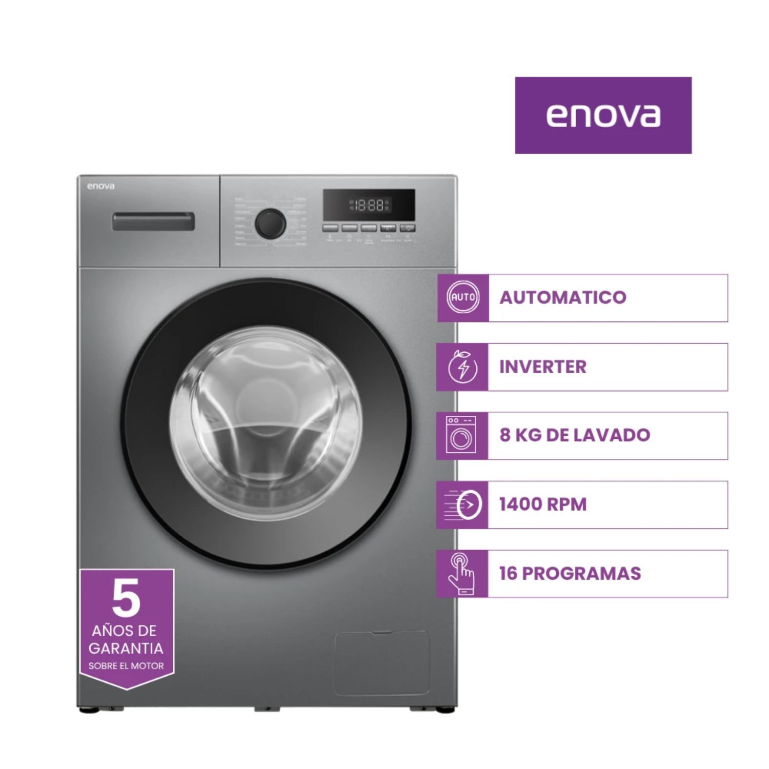 LAVARROPAS LE08F10-GR-L 8KG GRIS INVERTER C/FRONT.