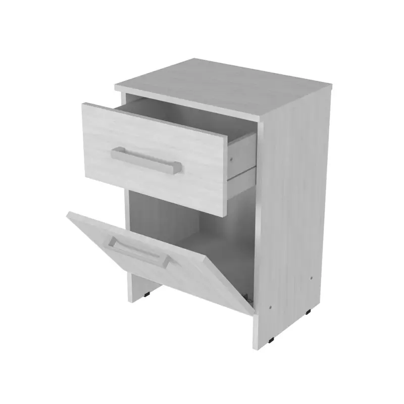 Orlandi presenta su mesa de luz, que esta elaborada en melamina de excelente calidad, está compuesta por un cajón y una puerta con bisagras metálicas. Además posee manijas plásticas en color gris. Ideal para tu habitación.